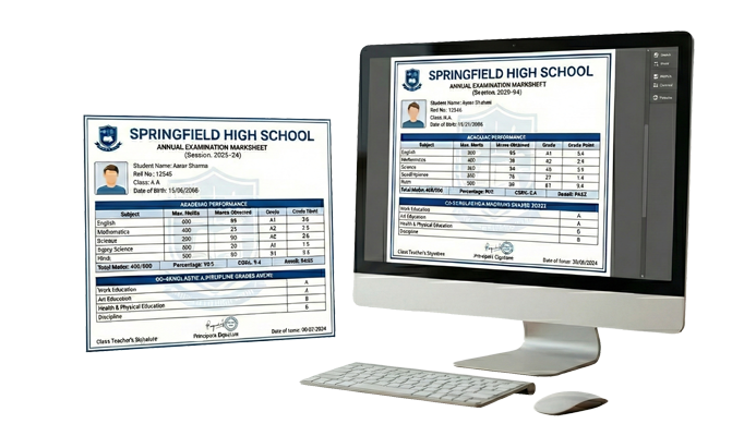 Designed to support various boards (CBSE, ICSE, State Boards, IB), this module ensures 100% accuracy in grading and provides beautifully designed, printable marksheets that reflect the professional standard of your institution.