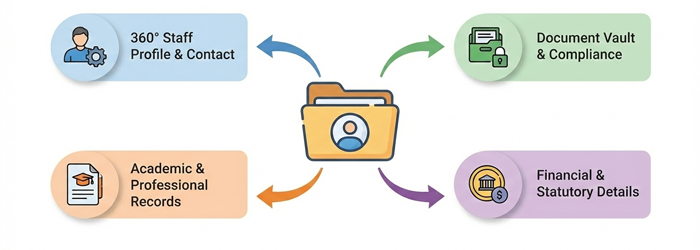 The Human Resource Module in a School ERP system helps schools manage staff information, attendance, payroll, recruitment, and performance with complete accuracy and automation. It centralizes employee records, qualification details, documents, roles, and responsibilities. Daily staff attendance can be tracked through biometric, RFID, mobile, or manual options, ensuring transparency. Payroll becomes effortless with auto-calculation of salaries, allowances, deductions, PF/ESI, and payslip generation. The module also streamlines recruitment, onboarding, leave approvals, shift allocation, and workload management. Performance evaluations, appraisal reports, and compliance documentation help maintain a professional and productive environment. With powerful analytics and automated workflows, the HR Module ensures smooth administration, reduces manual work, improves staff productivity, and enhances overall efficiency in school operations.