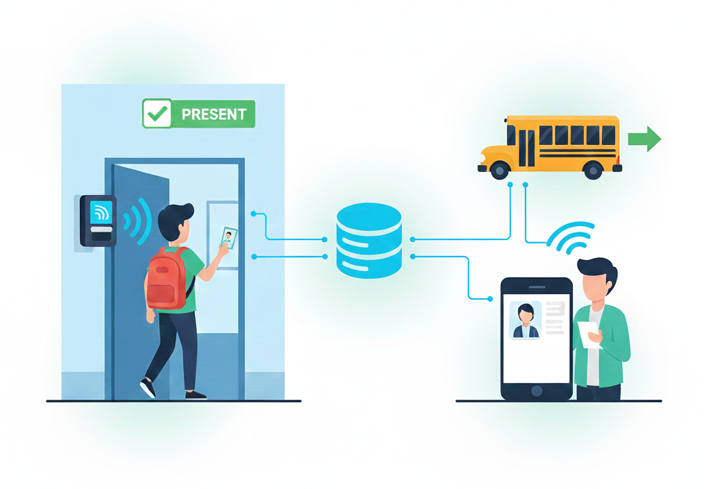 Bus Tracking: RFID tags on ID cards can track when a student boards or exits the school bus, giving parents peace of mind regarding their child’s location.