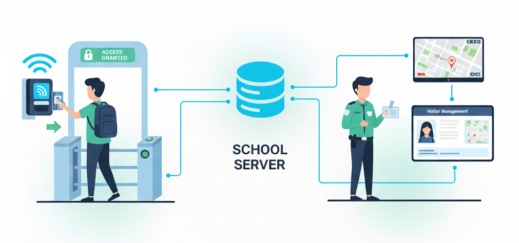 Secure Entry: Main gates, laboratories, and staff rooms can be locked with RFID electronic locks that only open for authorized cardholders.