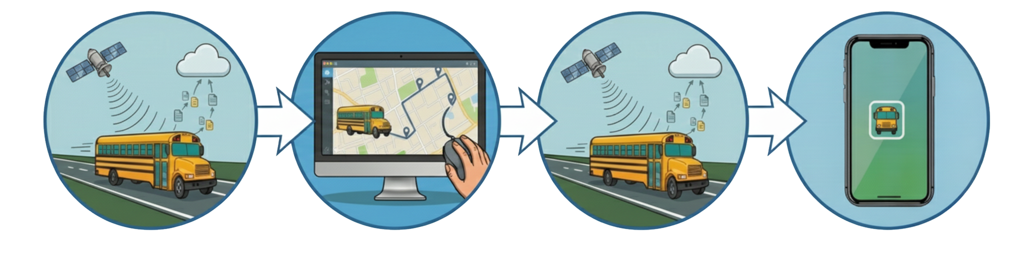 Geofencing & Stop Alerts: Set virtual boundaries and receive instant notifications when a bus enters or leaves a designated school zone or bus stop.