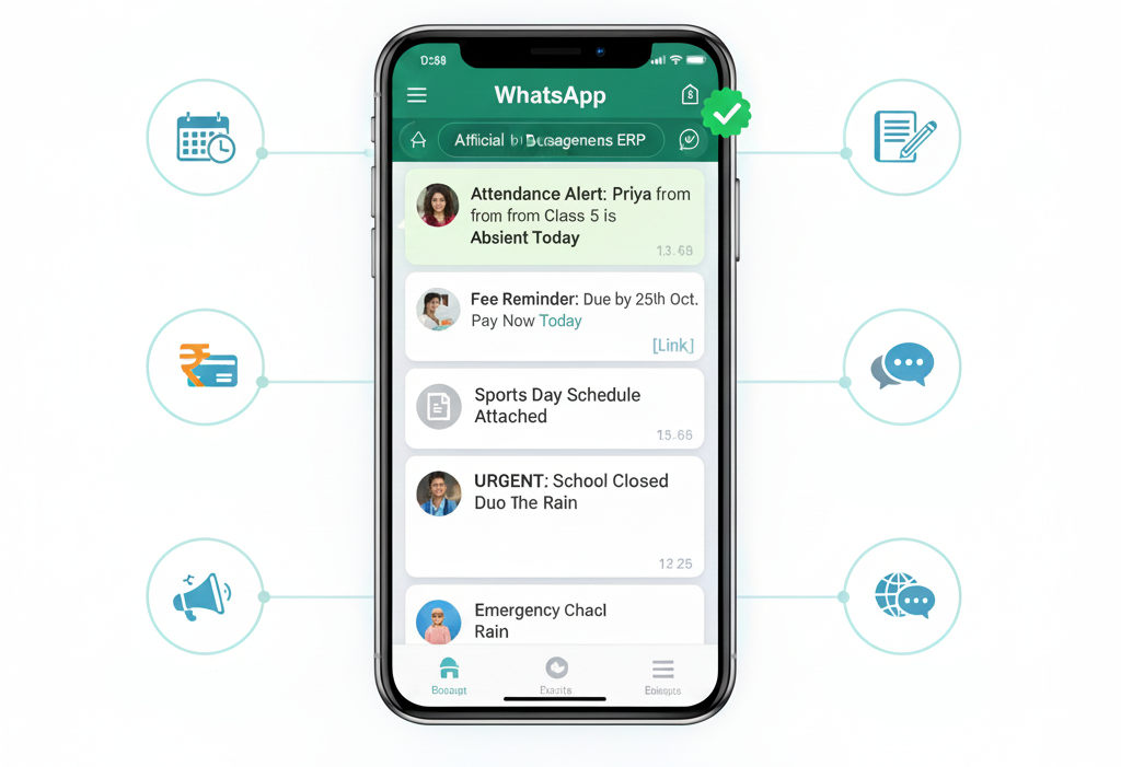 Our School Management ERP now seamlessly integrates with the WhatsApp Business API, turning your school’s communication into a two-way, real-time powerhouse. Send automated alerts, fee reminders, and academic updates directly to parents' most-used app—securely and instantly.